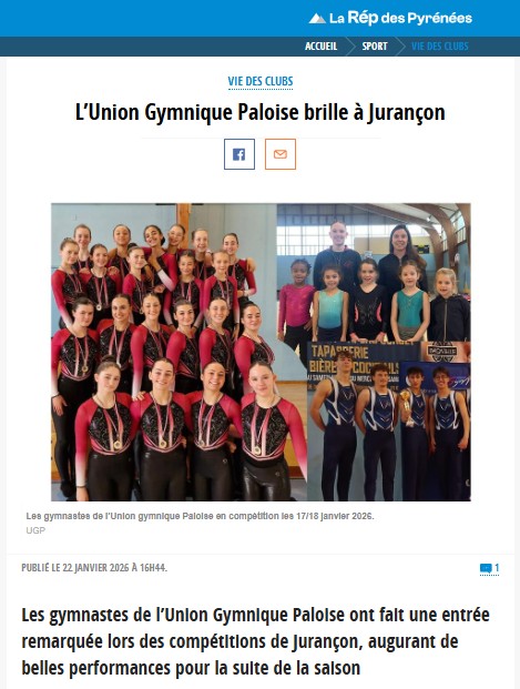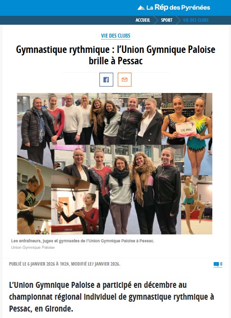 Union gymnique paloise : Sur les podiums départementaux! - La République des Pyrenees.fr (20/02/2024 larepubliquedespyrenees.fr)